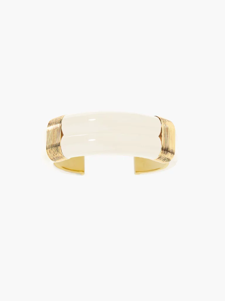 Bracelet Katt à double joncs en résine ivoire recouvert d’un détail strié doré à l’or jaune 750/1000.