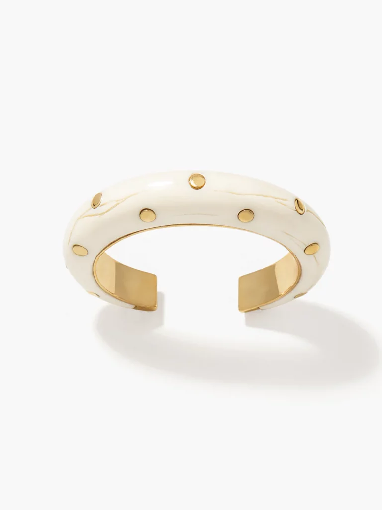 Jonc Caftan Moon en bakélite de coloris ivoire doré à l’or jaune 750/1000 et orné de clous.