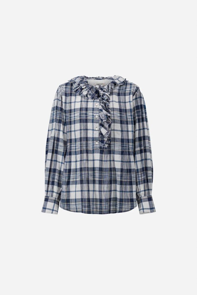 Blouse ample en coton KhadiCol volantéManches droites froncées aux poignetsMonogramme brodé au poignetOuverture devant ornée de volants