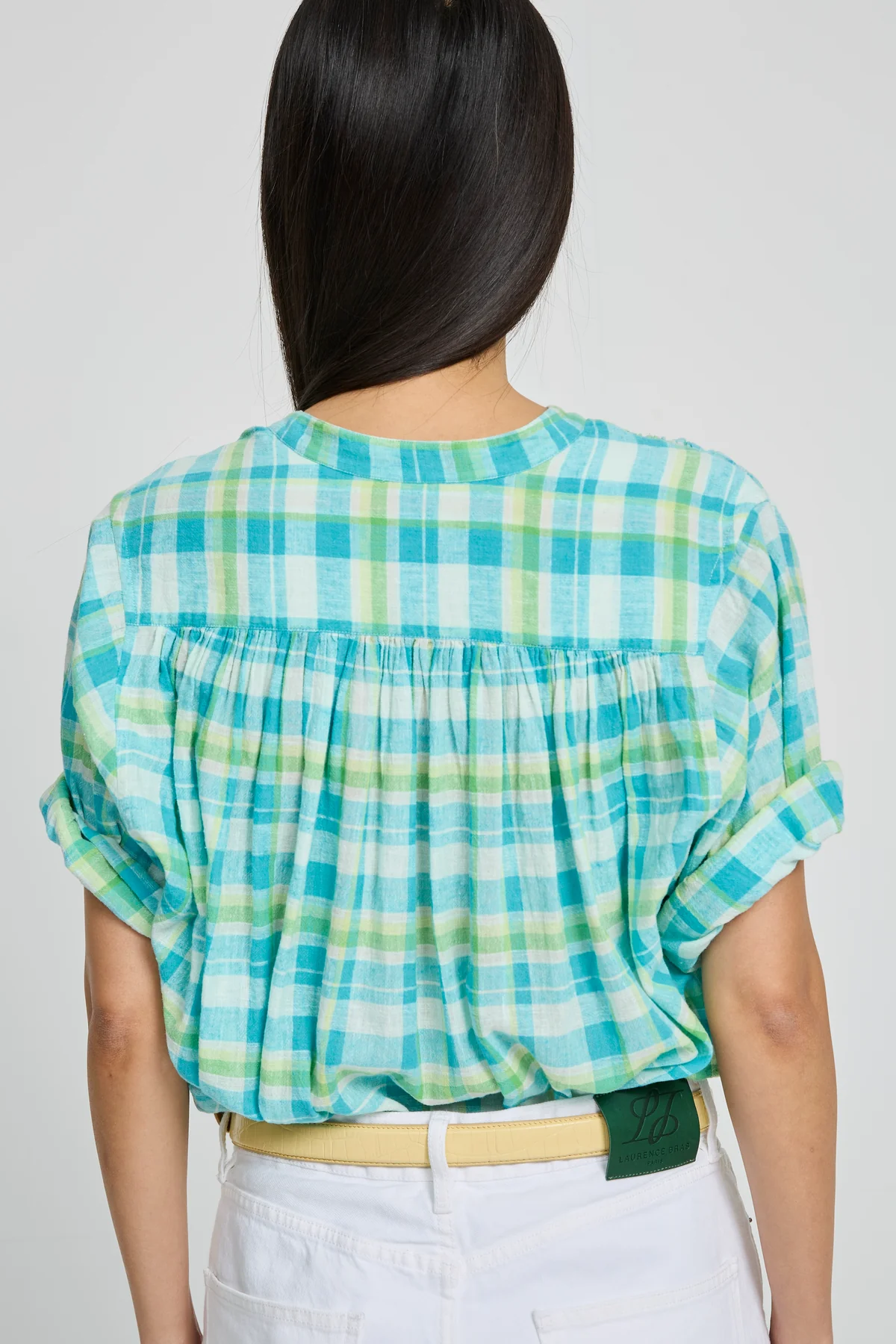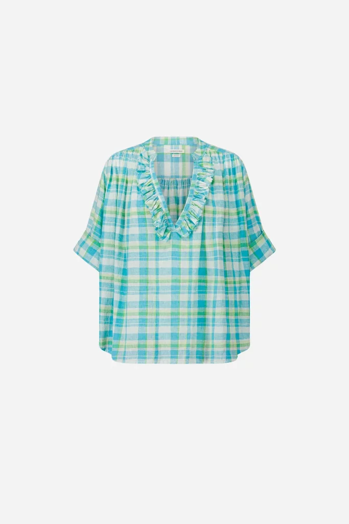 Blouse en coton à carreaux turquoises