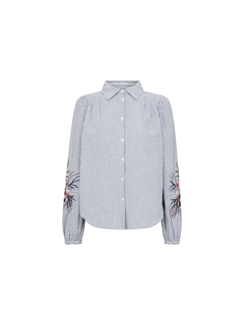 Une chemise classique en coton ornée de broderies délicates aux manches pour une touche féminine. Sa coupe intemporelle, sa fermeture boutonnée et son tissu doux offrent à la fois structure et confort : idéale pour toutes les occasions, des plus décontractées aux plus habillées.