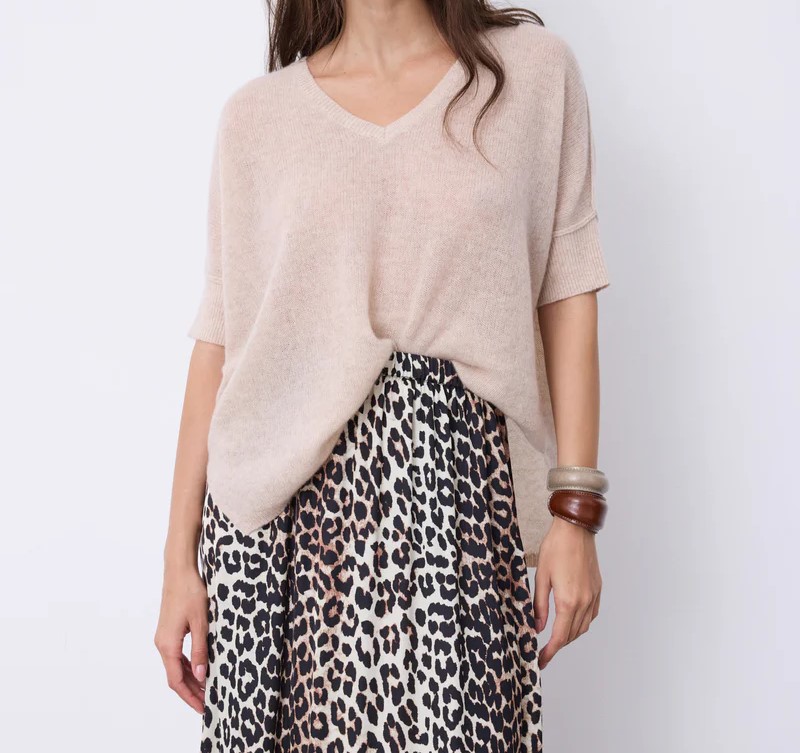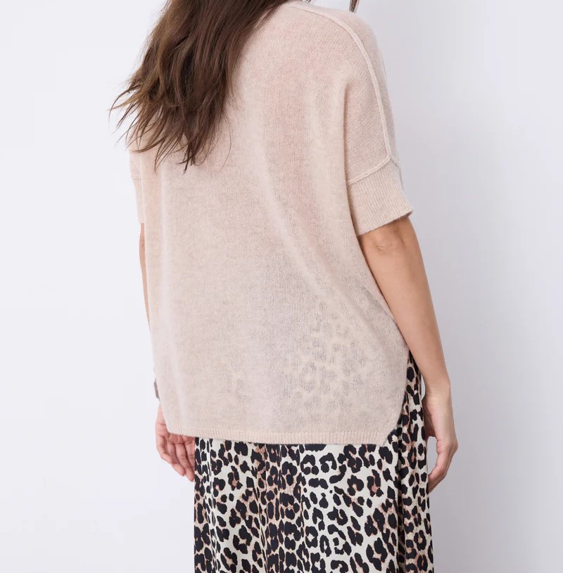 – Cachemire léger – Fentes latérales – Finitions bords-côtes – Coupe ample – T-shirt 100% cachemire 2 fils jauge 9