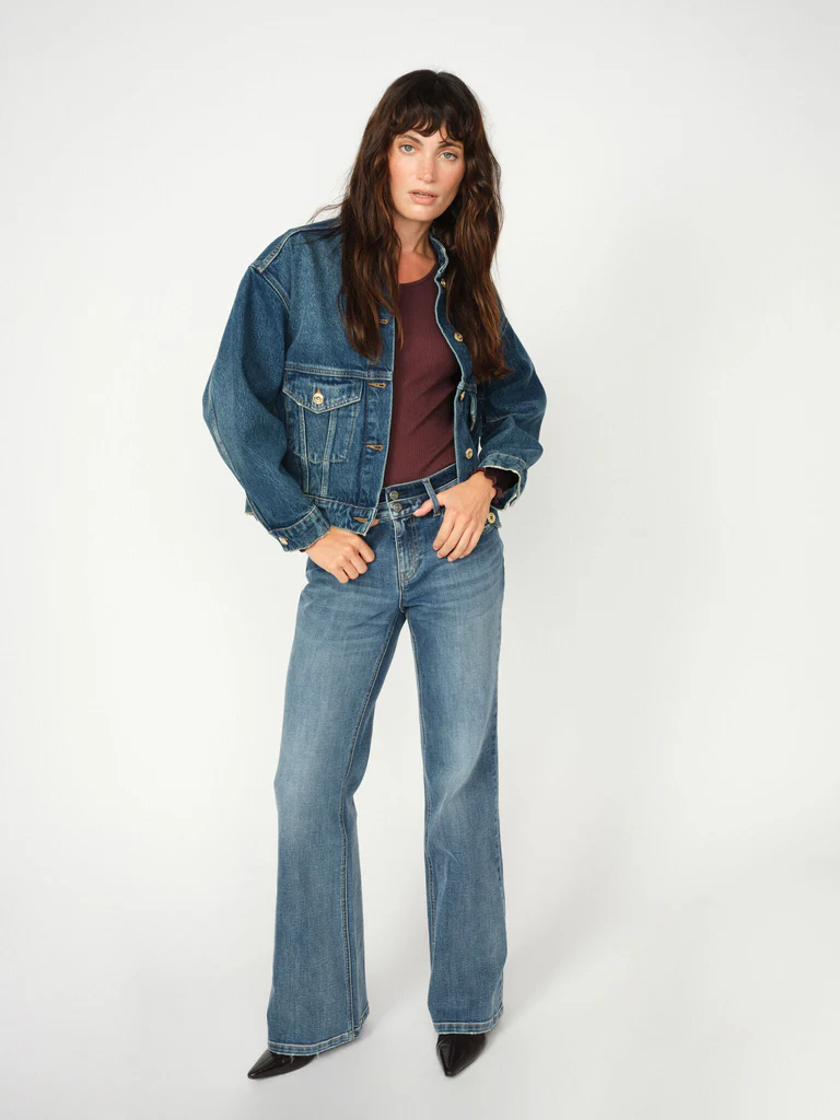 Ce jean tendance présente une coupe évasée flatteuse et une taille mi-haute, alliant élégance et confort au quotidien. Les poches avant sont ornées d’élégants ornements, tandis qu’une élégante fermeture éclair sur la poche gauche apporte une touche contemporaine. Portez-le avec une blouse raffinée ou un t-shirt audacieux pour un look chic et moderne.