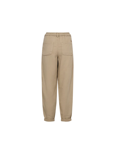 Ce pantalon décontracté est confectionné dans un tissu doux et léger pour une allure naturellement décontractée. Doté d’une taille élastiquée, d’une ceinture à nouer et de coutures discrètes, il allie confort et style utilitaire moderne. Parfait avec un chemisier rentré ou un simple t-shirt pour un look quotidien facile à porter.